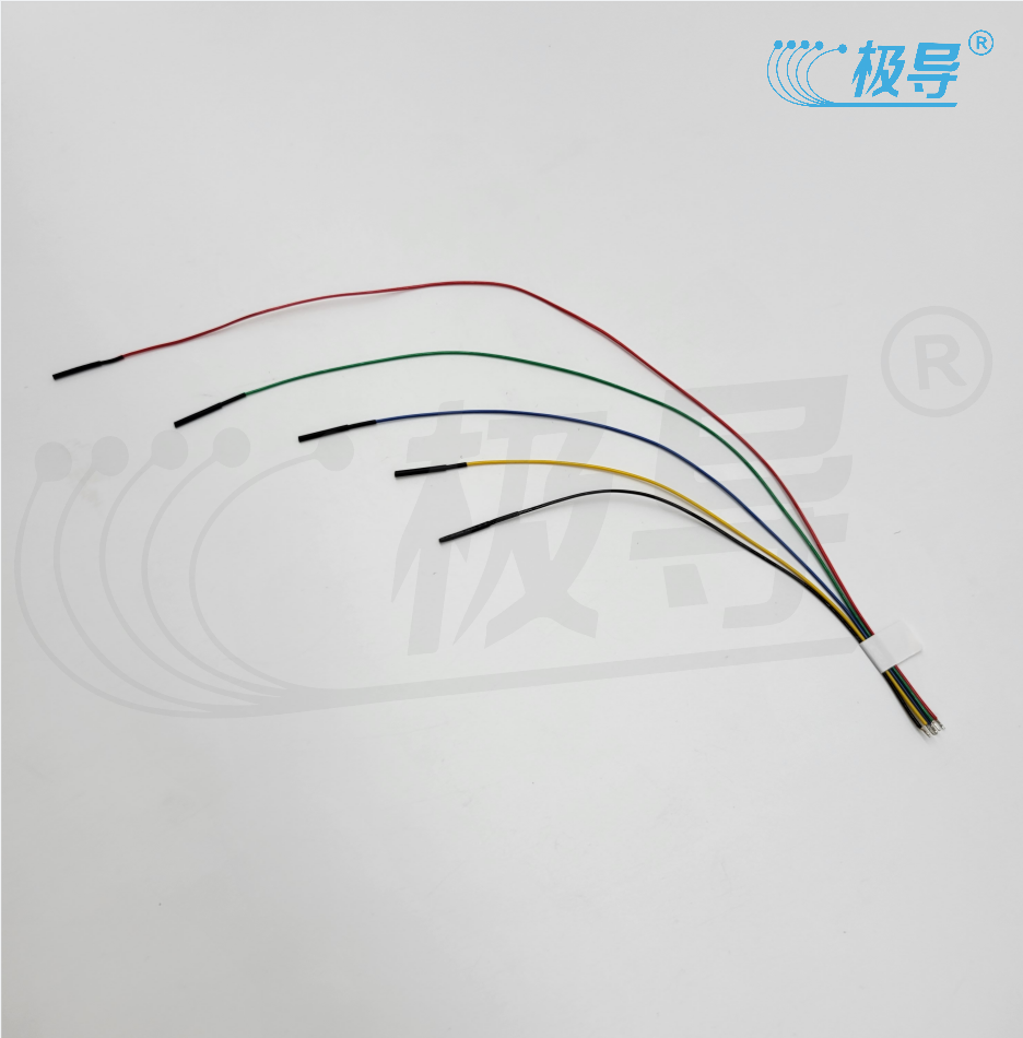 5色镀银铜箔丝导线,5条为1组;导线长度:红色34cm,黄色18cm,蓝色22cm,绿色28cm,黑色16cm